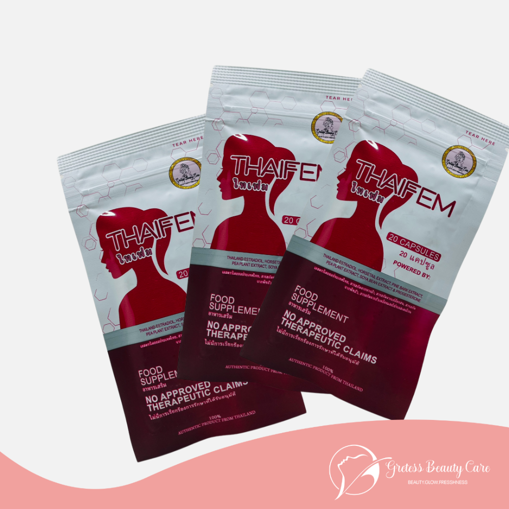 Thaifem Beauty Supplement with 17 beta estradiol,Micronized Progesterone,Collagen and L Carnitine 60 Caps By Gretess THAIFEM brings out the best in you.